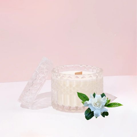 LEE & LOU Luxury Gardenia candle in beautiful glass jar: Gardenia, Star Jasmine and Lily of the Valley