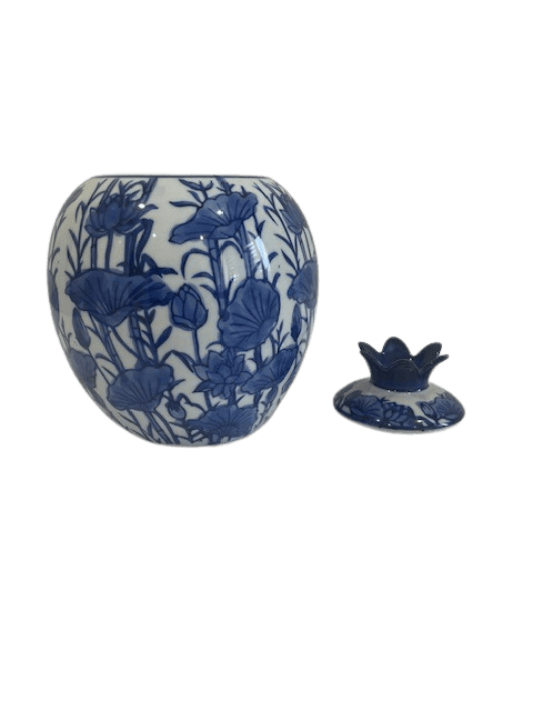 Ginger jar with removable lid, blue porcelain. 14x14x18cm