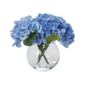 Hydrangea in glass vase, 2 stems faux blue. 24x24x21cm