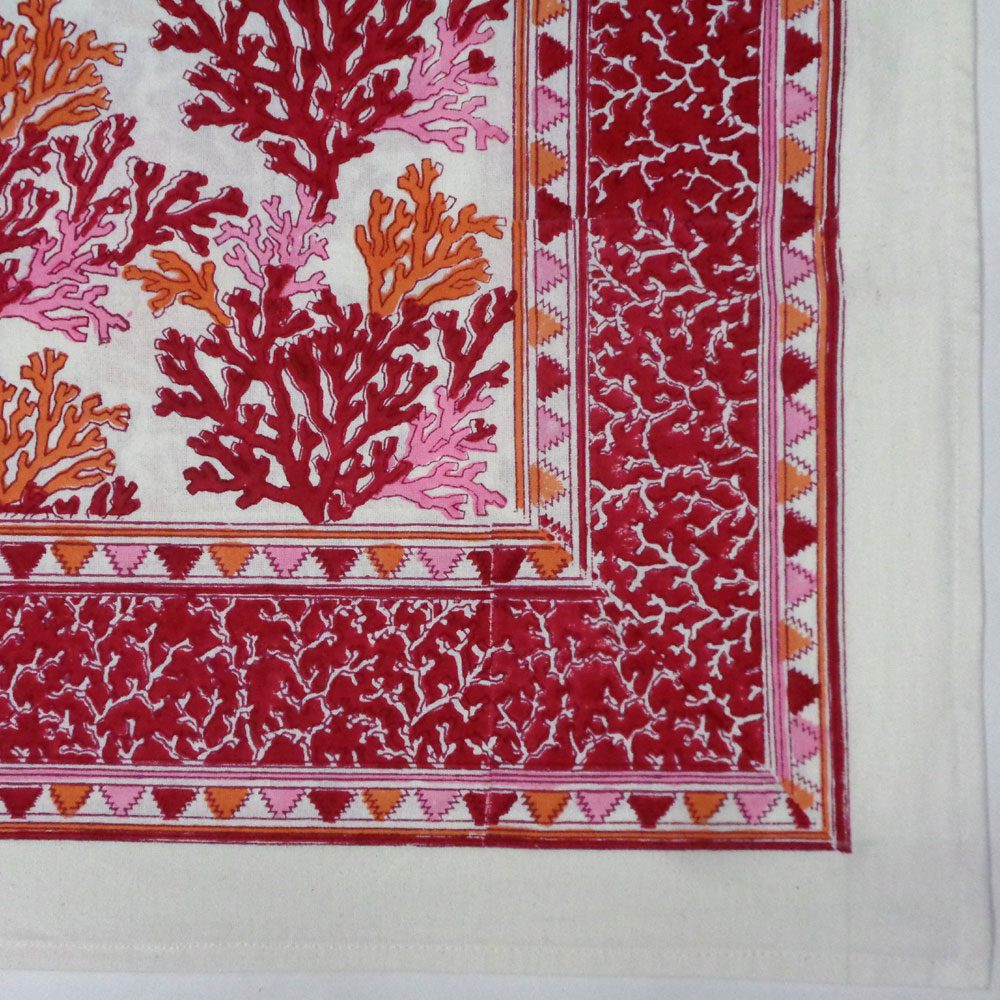 Hand Block Printed Cotton Tablecloth Coral Red