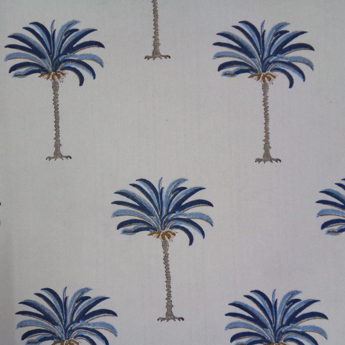 Hand Block Printed Cotton Tablecloth Palm Tree Blue